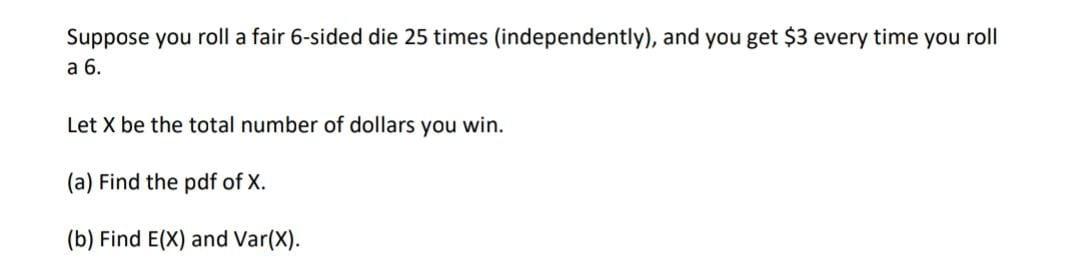 Solved Suppose You Roll A Fair 6 Sided Die 25 Times Chegg Com